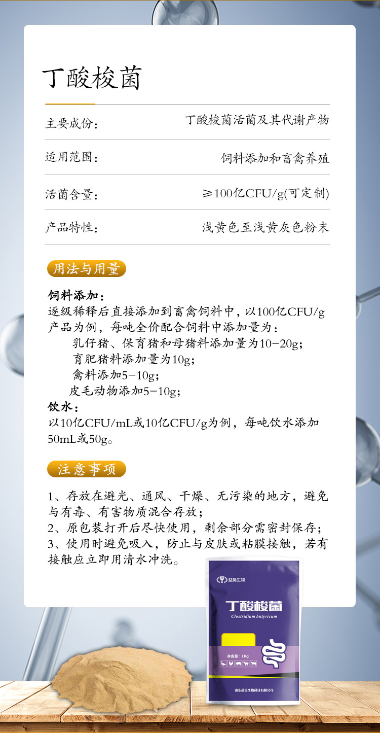 【主要成分】:丁酸梭菌、菌種生長促進(jìn)劑及功能性載體。